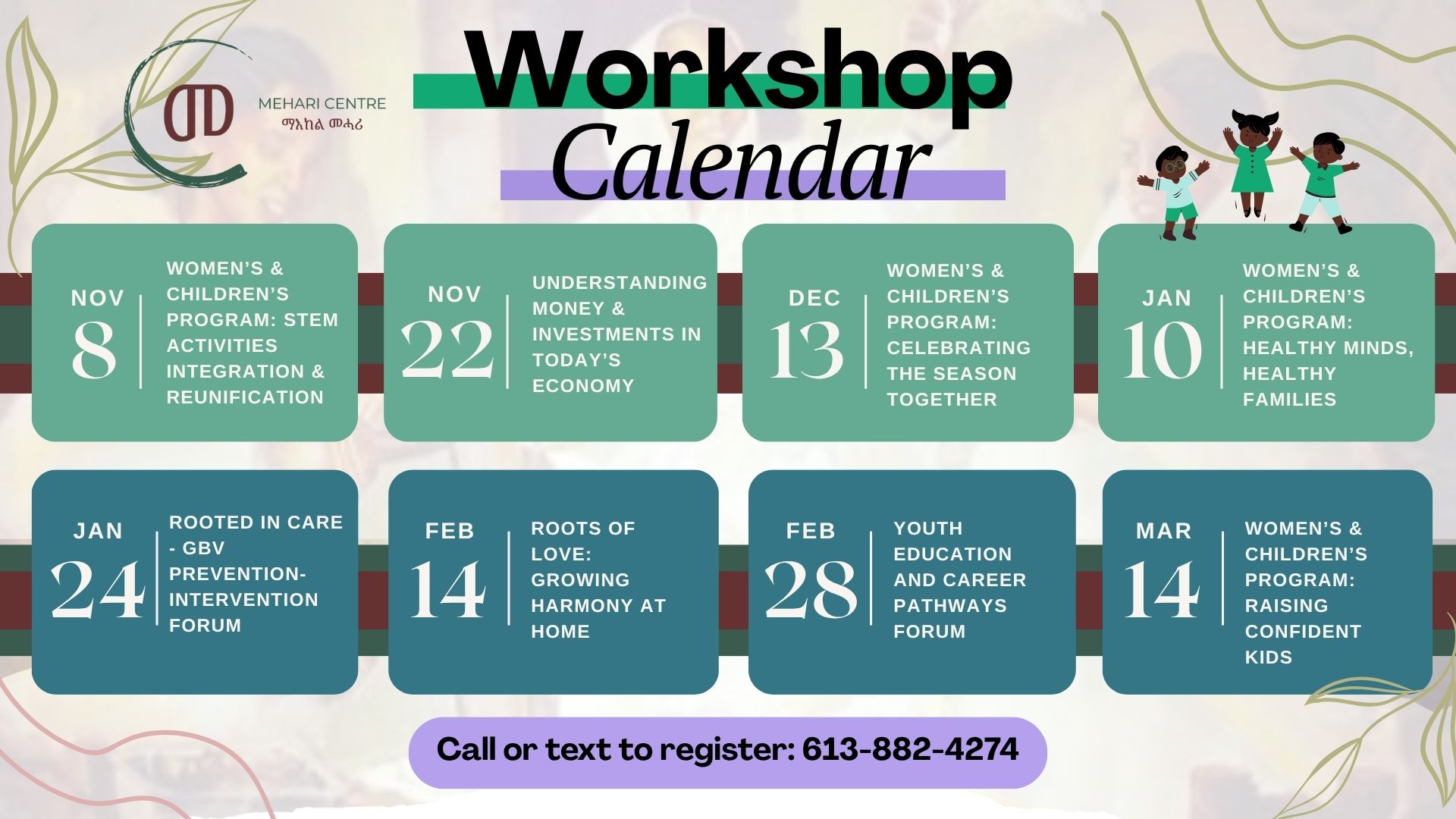 At the Mehari Centre, we provide a range of programs and services designed to help Eritreans integrate into Canadian society. These include in-person and virtual settlement services, workshops, healing circles, children’s and youth programs, and personalized support tailored to individual needs.